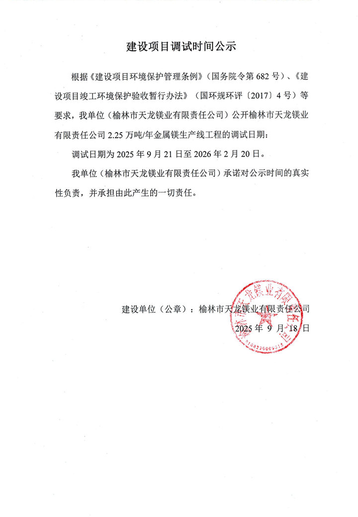 天龍鎂業(yè)金屬鎂2.25萬噸、蘭炭50萬噸驗收公示